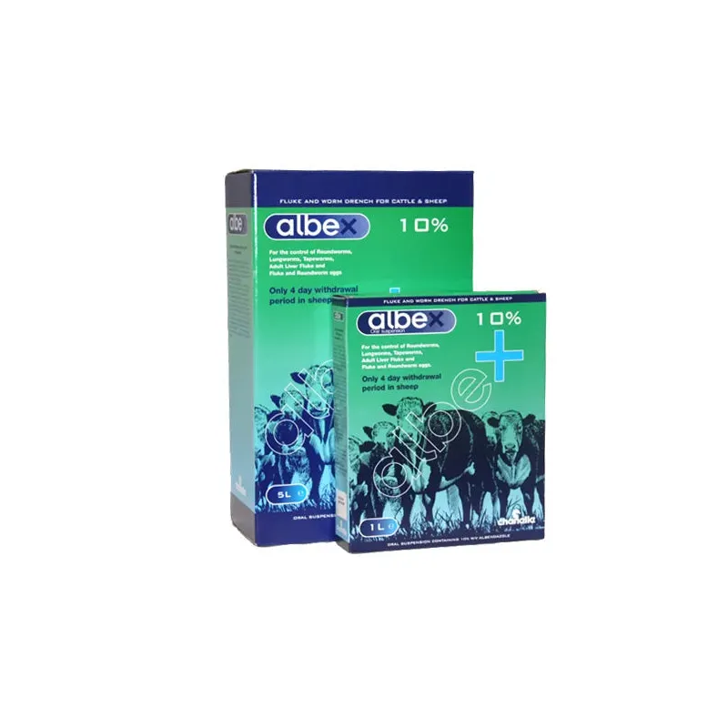 Albex 10% is a multi-purpose anthelmintic which contains albendazole. It treats mature and developing forms of roundworms (stomach worms & gut worms), lungworms, tapeworms and adult liver fluke in cattle and sheep.